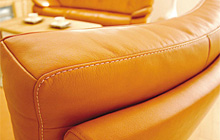 風合いのある大判の革に、太糸ステッチでダイナミックな縫製が特徴